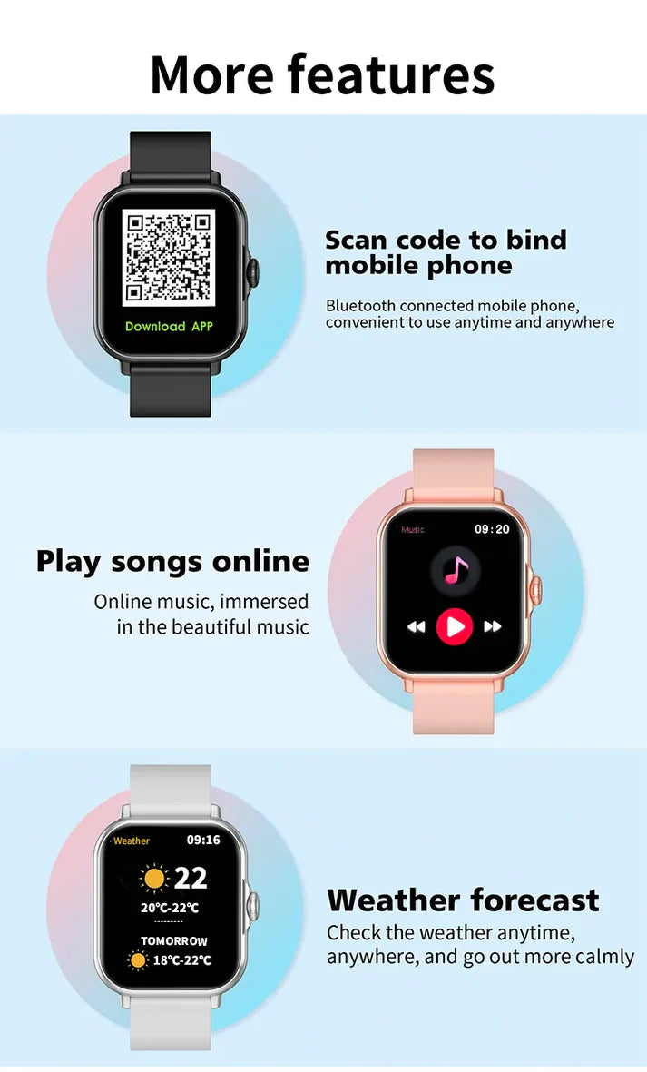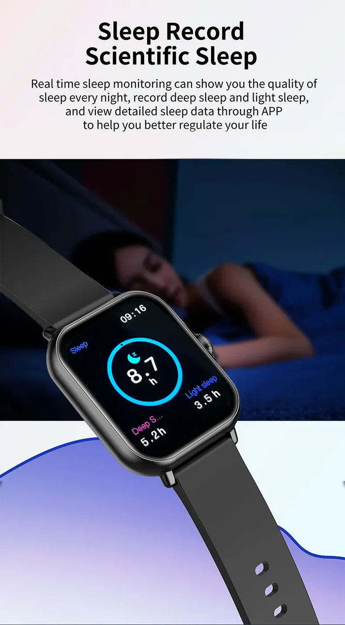 Monitor your health with features such as blood pressure measurement, blood oxygen testing, sleep monitoring, heart rate tracking, body temperature monitoring, respiratory monitoring, and even reminders to stay hydrated and avoid prolonged sitting.