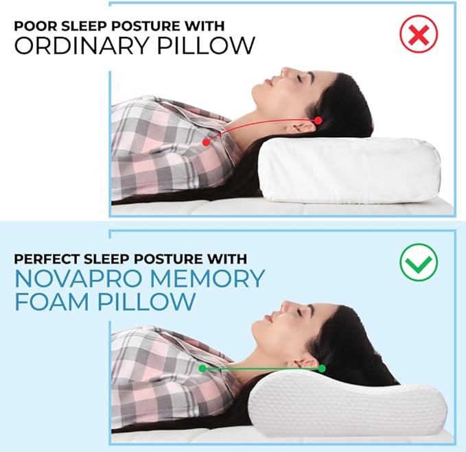 - Correctly positions your head and neck so you can sleep properly and wake up refreshed.